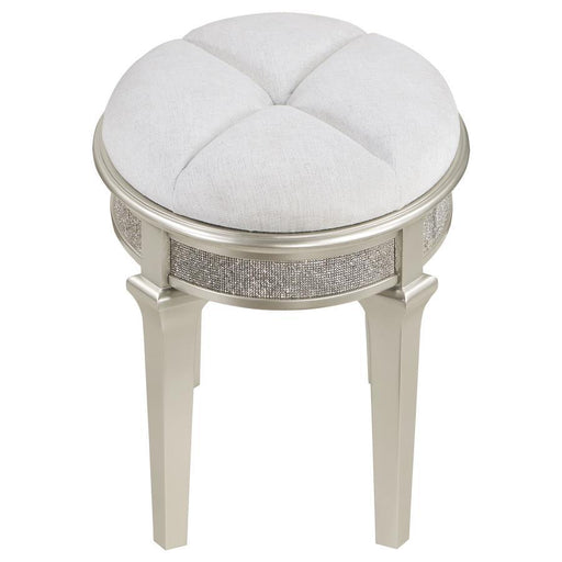 Evangeline - Upholstered Oval Vanity Stool Silver And Ivory - Silver Oak