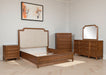 This striking chest of drawers looks equally at home in traditional or modern settings. A brown wood tone finish offers a casual modern look. Spacious drawers incorporate picture frame moulding and champagne goldtone pulls for a clean yet sophisticated design. Combined with the top's chic inset metal frame, it's a wonderful style awakening in the bedroom.