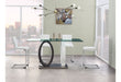 Striking looks and ultra-modern design. This stylish rectangular shaped glass top bar table is finished with a two toned white and wood grain oval pedestal style base and stainless steel support leg giving this table a unique and visually dynamic look. The arrangement of this table makes it a perfect match for your dining area.