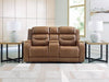 Knightington - Power Reclining Loveseat With Audio Console - Caramel